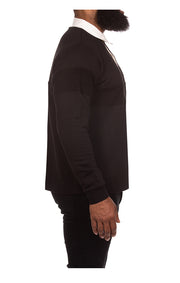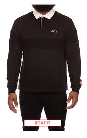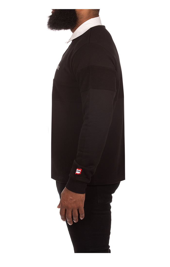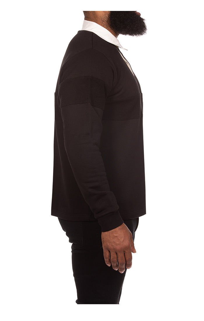STANDARD FRENCH TERRY LS SHIRT WITH POLO COLLAR BUTTON PLACKET and WOVEN LABEL