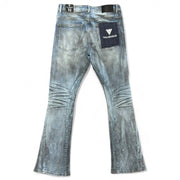 The VALABASAS Astonish Denim in Dark Dirty Blue Stacked captures a perfect balance of rugged tone and refined shimmer. Designed with an ombré fade and hand-applied rhinestone detailing that cascades from the waist to the hem, this pair adds a luminous touch to the classic dirty blue wash. The stacked fit elongates the leg, offering a sleek, street-inspired silhouette made for standout styling.