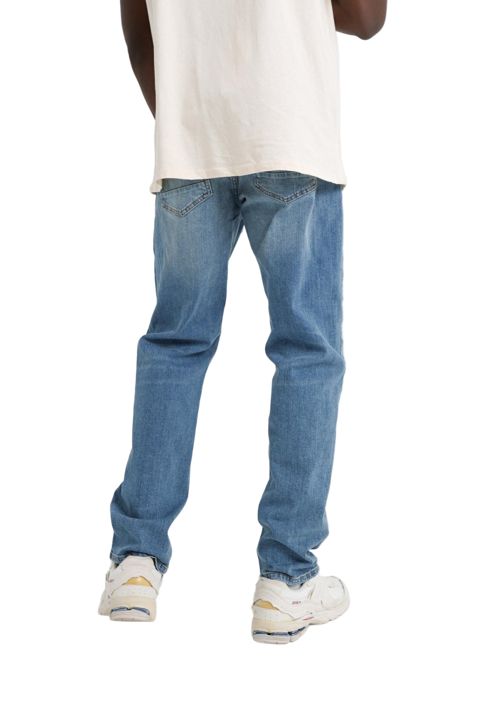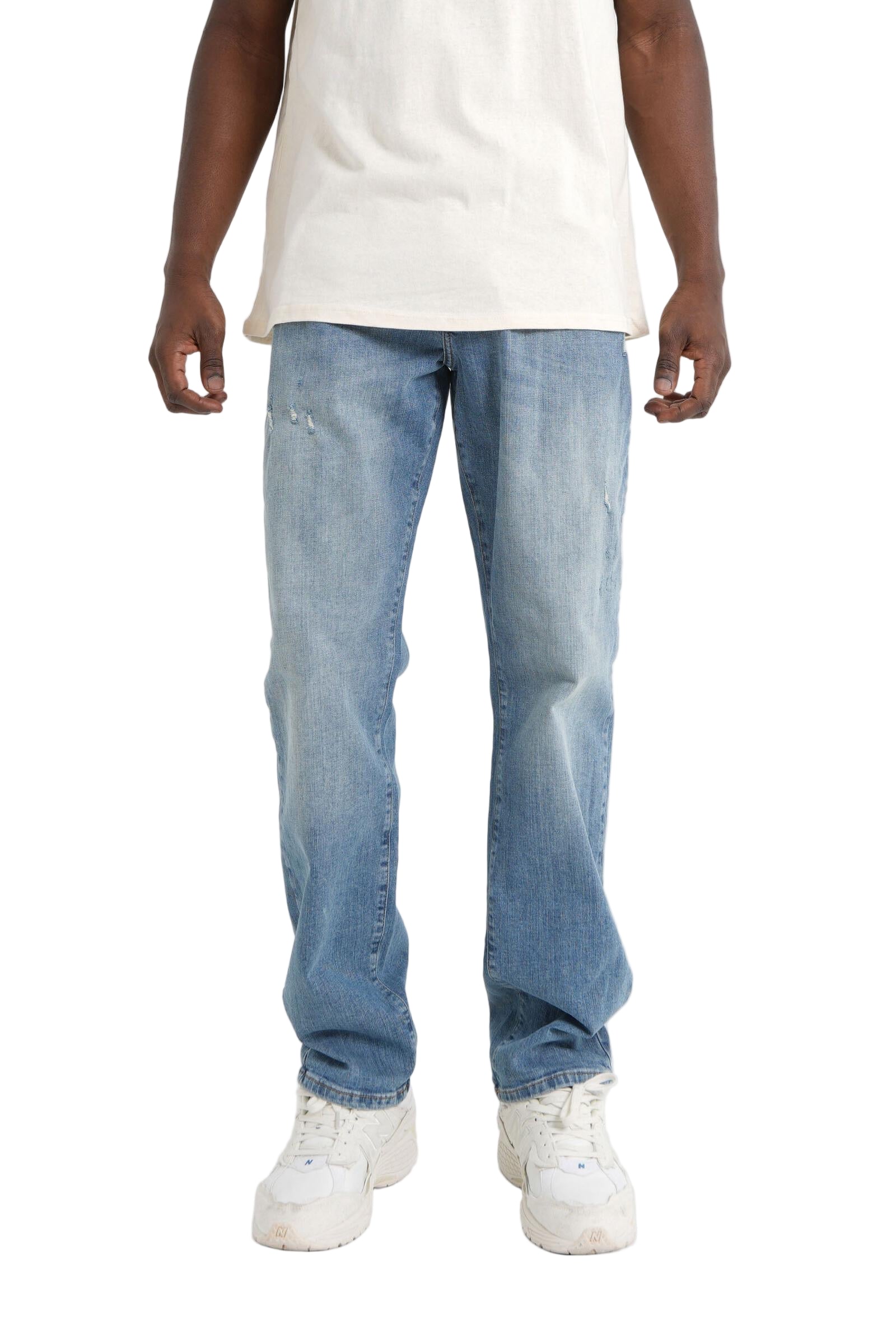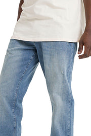 Sixth June jeans for men. Stretch fabric, scratches in the front. Stamped logo on a leather patch at the back of the waist, side pockets, back pockets, buttoned fastening, belt loop. Regular cut. Composition: 98% cotton, 2% elastane.