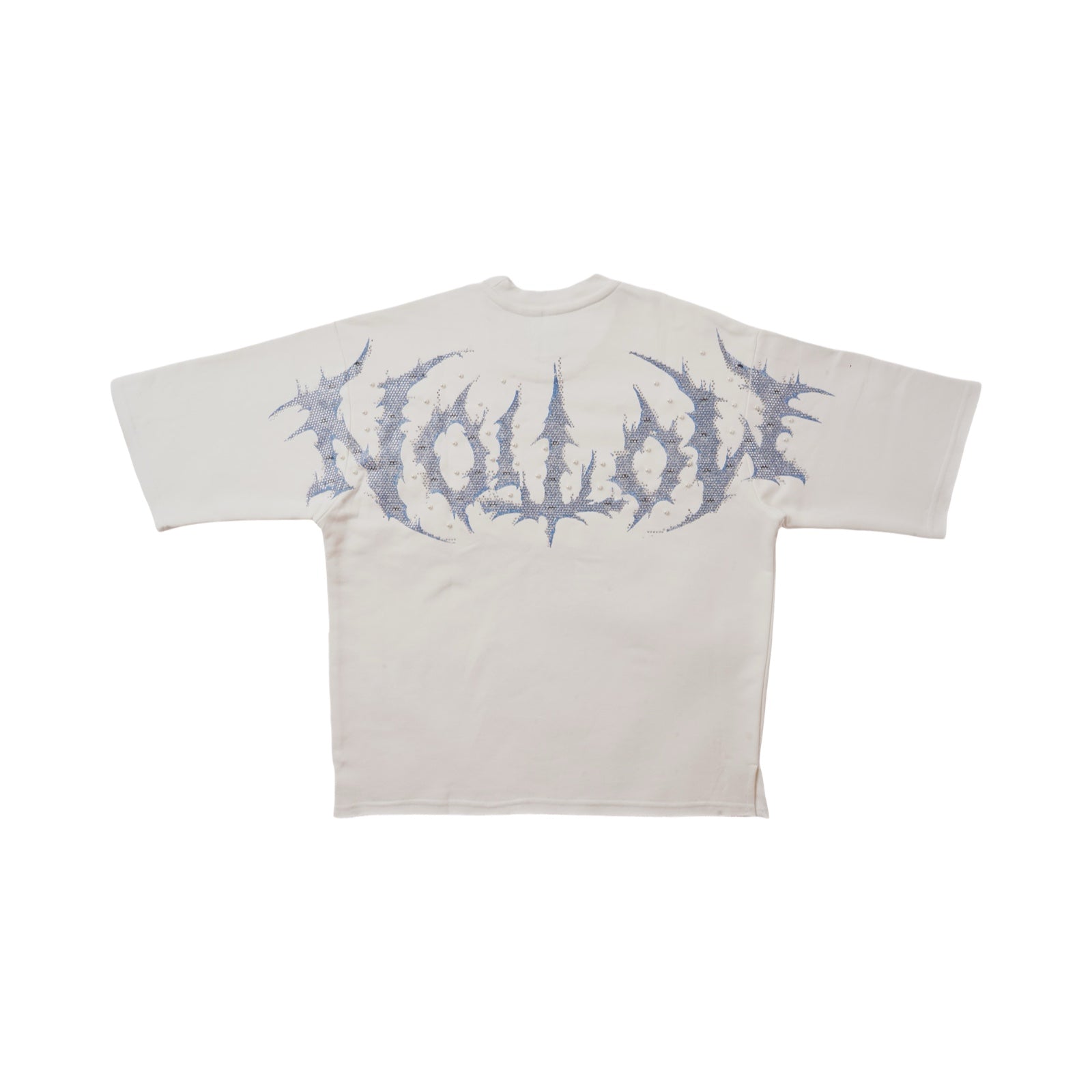 • Logo: Motion text in jagged gothic font across the chest in electric blue rhinestones