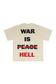 The CHPTRS “WAR” Tee delivers bold messaging with vintage-inspired design. Crafted from premium cotton in a neutral cream tone, the front features a subtle tonal graphic of soldiers in motion. The back makes a statement with oversized text reading “WAR IS HELL”, striking through “PEACE” in vivid red. Finished with a relaxed fit and soft feel, this tee combines everyday wearability with a powerful visual edge.