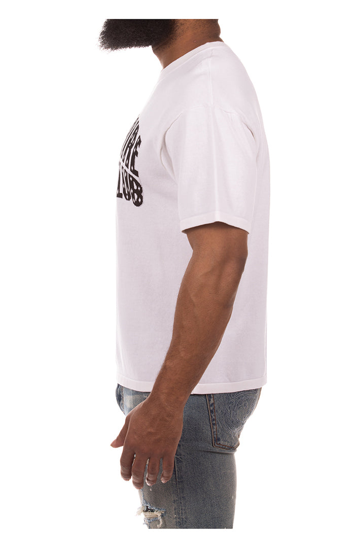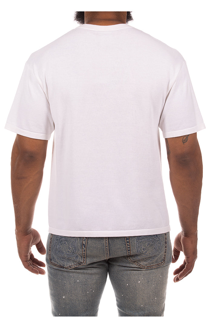 RELAXED SS SWEATER KNIT CREW NECK SHIRT WITH KNIT JACQUARD LOGO at FRONT CHEST