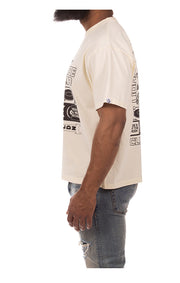 CROPPED KNIT JERSEY SS SHIRT WIth WASHED CREW NECK PRINT