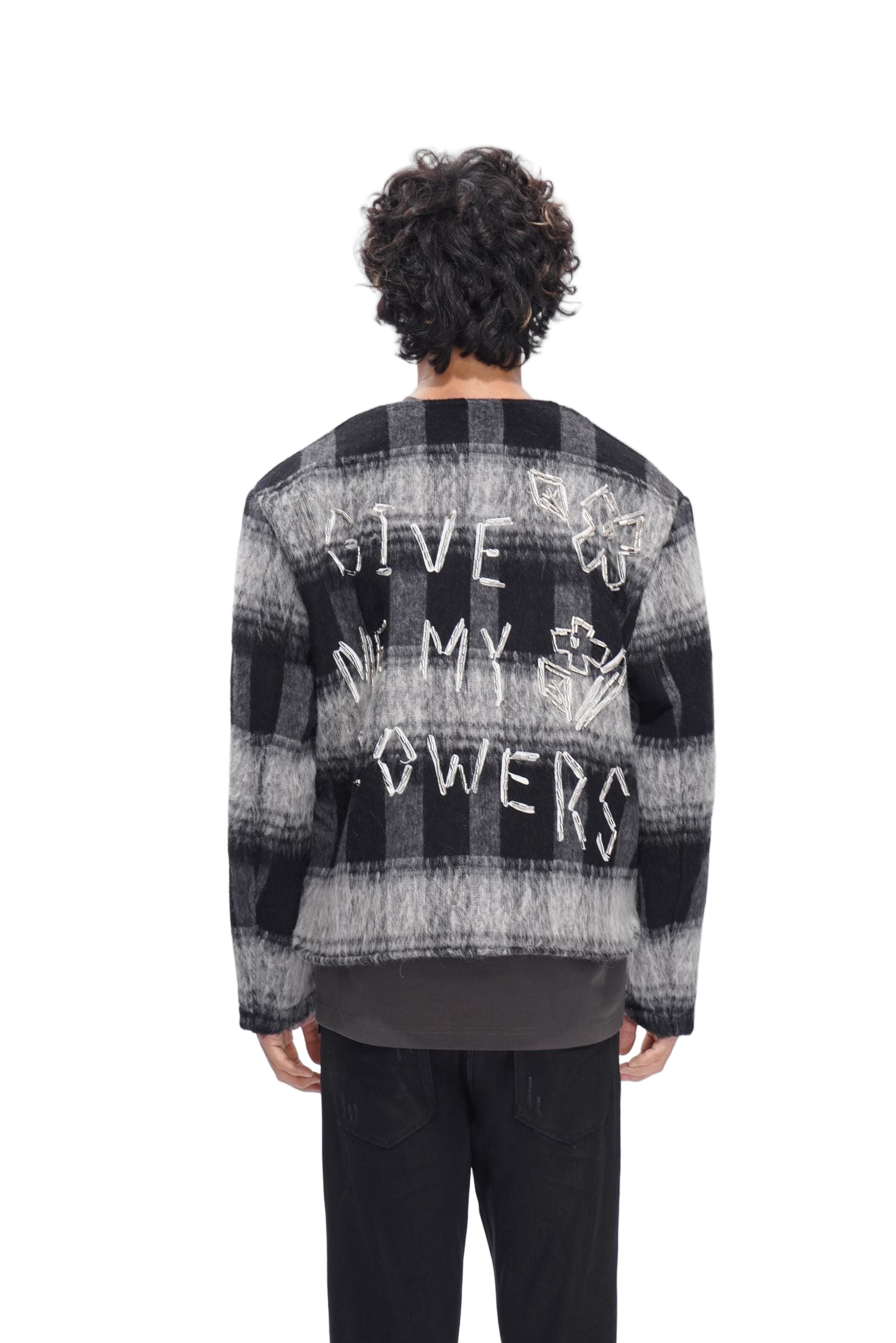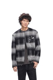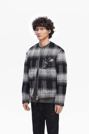 The VALABASAS Velour Jacket in Black is a statement in subtle contrast and elevated craftsmanship. Designed with a soft brushed plaid fabric, it pairs a vintage-inspired pattern with modern tailoring. The chest embroidery adds an unexpected touch of shine, while the zip closure and relaxed cut make it a standout layering piece for cooler seasons.