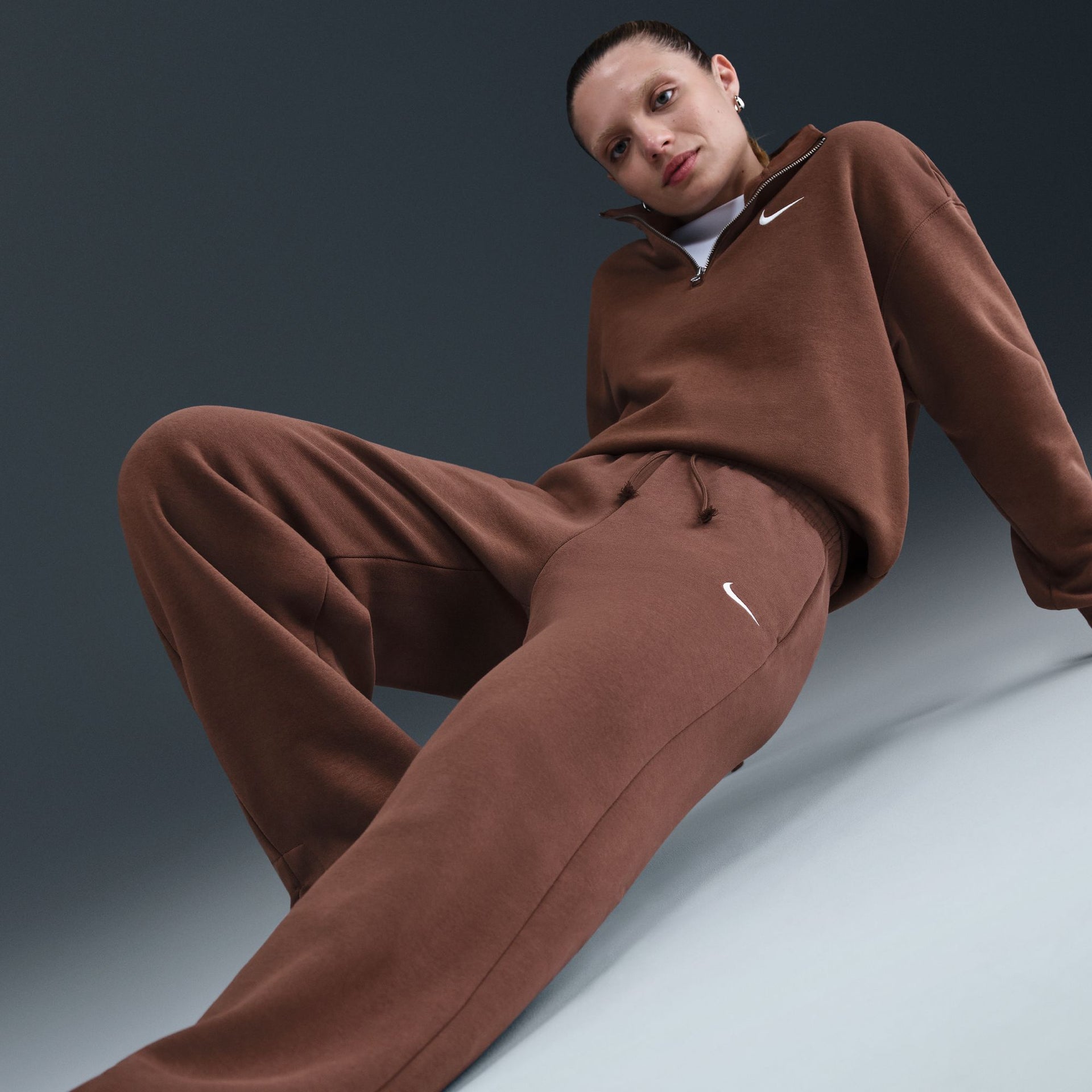 Nike Sportswear Phoenix Fleece Women's High-Waisted Wide-Leg Pants Made with midweight brushed fleece that feels extra soft on the inside and smooth on the outside, these wide-leg pants have an all-day cozy feel.