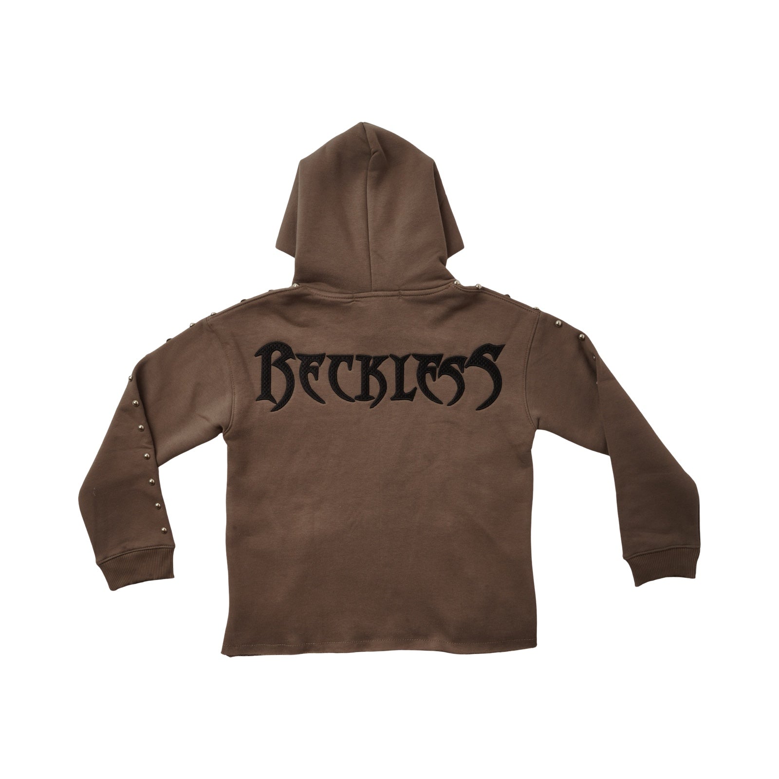 "RECKLESS" STUD CROPPED HOODIE HARVEST