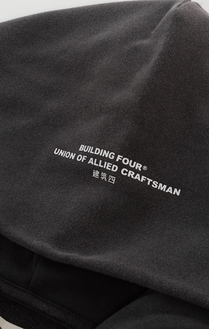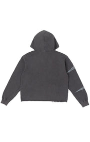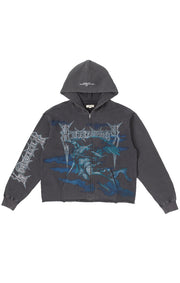 STANDARD FIT SNOW WASH FRENCH TERRY SWEATSHIRT WITH ZIP FRONT HOOD AND PRINT
